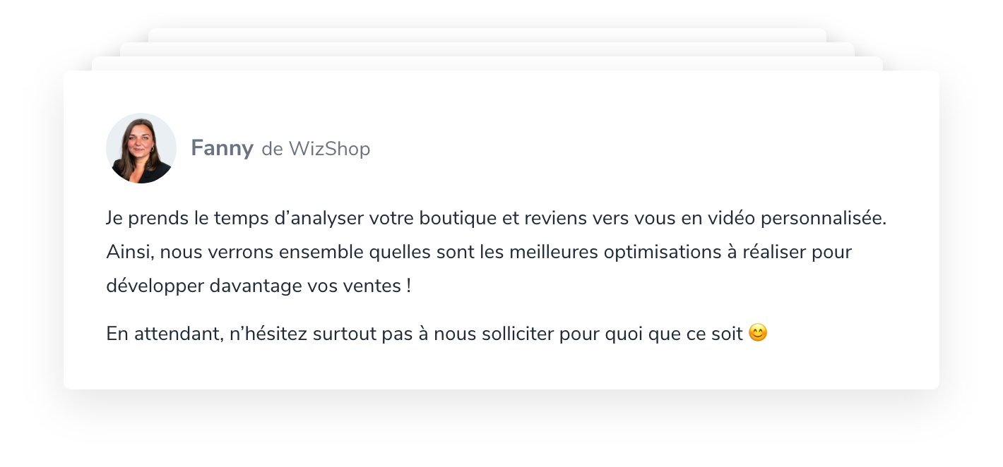 Au-delà, WiziShop est aussi une entreprise française, de proximité et surtout réactive en termes de suivi relationnel et technique..